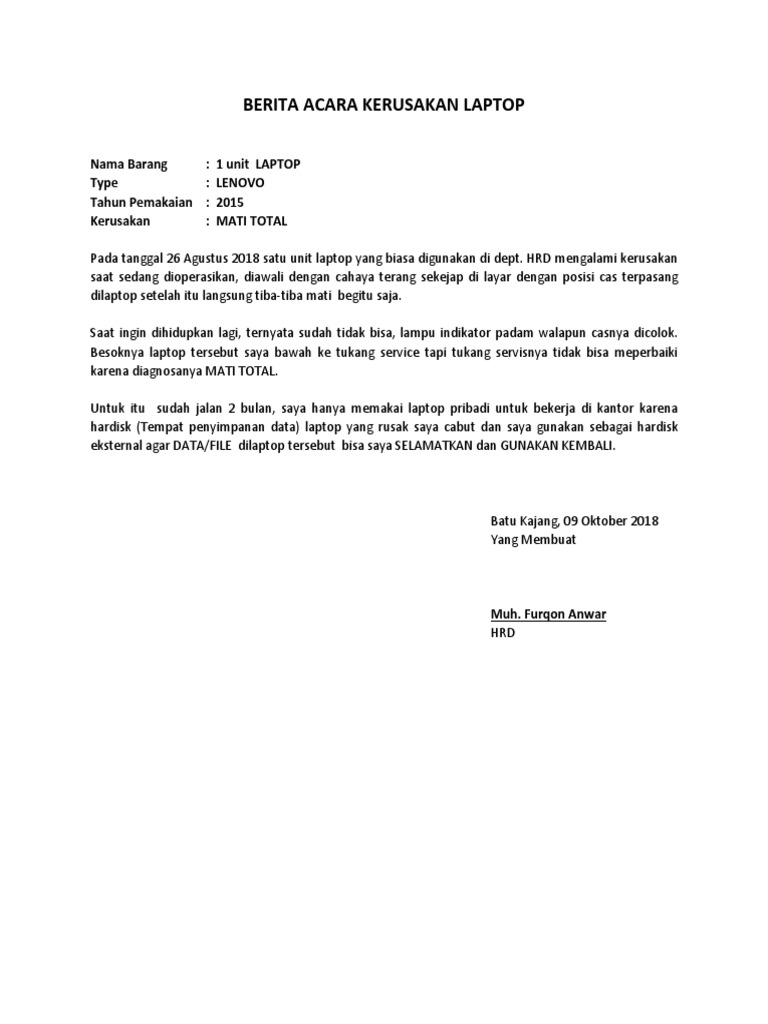 Contoh surat berita acara kerusakan barang. We did not find results for: Maybe you would like to learn more about one of these? Check spelling or type a new query.