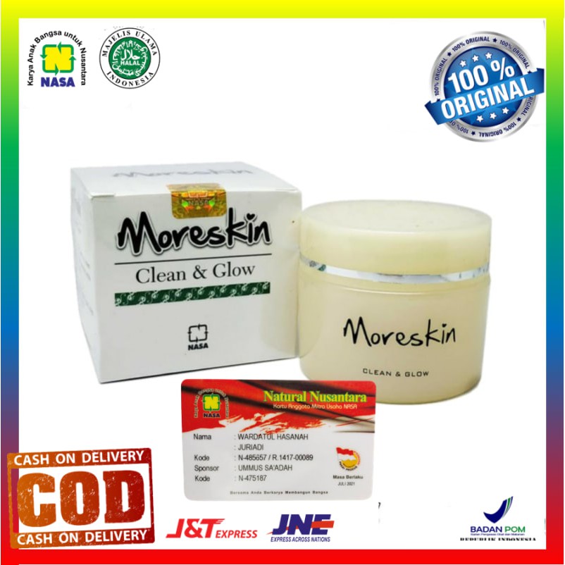 Promo cream pemutih wajah / moreskin clean & glow original nasa / krem pencerah wajah / grosir jamu . Apakah produk ini ada efek samping dan ketergantungan? Kimia / tanpa efek samping / temurah terlaris / cod / bayar di tempat. Moreskin clean and glow, cream booster nasa yang efektif mencerahkan,. Selain itu, krim moreskin clean and glow juga telah mendapat izin edar resmi dari.